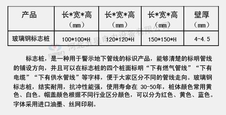 玻璃鋼標志樁是一種用于警示地下管線的標識產品,玻璃鋼標志樁結實耐用,抗沖性能強,使用壽命長達30-50年。