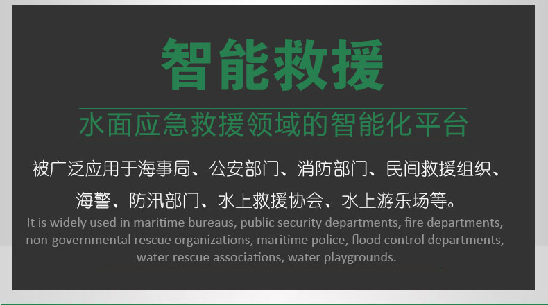智能遙控救生器,外殼采用耐磨性、電絕緣性、韌性及耐寒性好的HDPE材料制作,適應各種不同惡劣環境,目前搭配的動力系統是安全性很好的鋰電池集成系統,使用安全,內置9軸陀螺儀,可以識別姿態信息,自動切換左右,海浪沖翻后也能恢復姿態并保持航線運行。