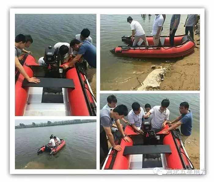 河北省一家水庫管理局從河北五星電力設(shè)備有限公司緊急采購15艘防汛搶險橡皮舟,河北五星“應(yīng)急響應(yīng)技術(shù)服務(wù)隊”三名隊員在客戶收到貨后,長途奔波數(shù)百公里,為客戶現(xiàn)場調(diào)試設(shè)備,免費提供操作技術(shù)培訓(xùn),受到客戶贊譽(yù)!